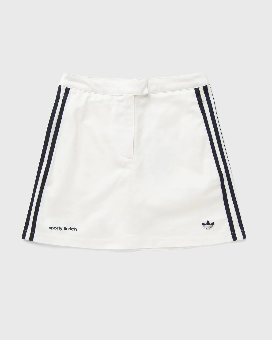 Pure court style served as the inspiration for this adidas x Sporty & Rich skort. With its soft, stretchy cotton material in muted, sophisticated colors, it conveys a feeling of casual lightness. Contrasting 3-Stripes and the adidas and Sporty & Rich logos complete the design. - Button fastening - Side pockets - Co-branding This product is partly made of certified recycled material. Get sustainable products from Adidas now at BSTN! Article Number: JL7194 Gender: Women Color: CWHITE/NTNAVY Material: 97% Cotton, 3% Spandex/elastane