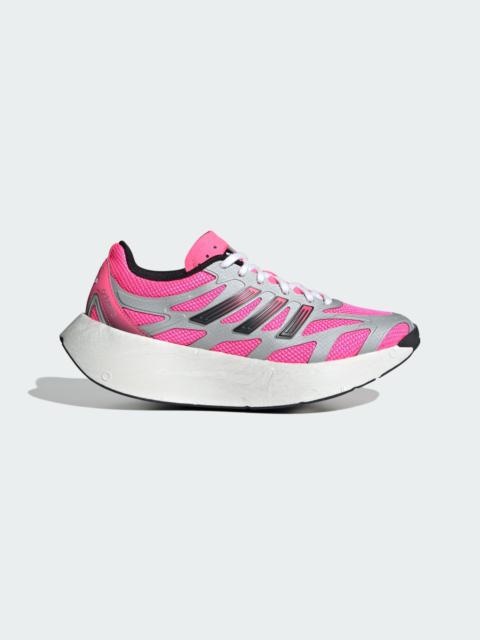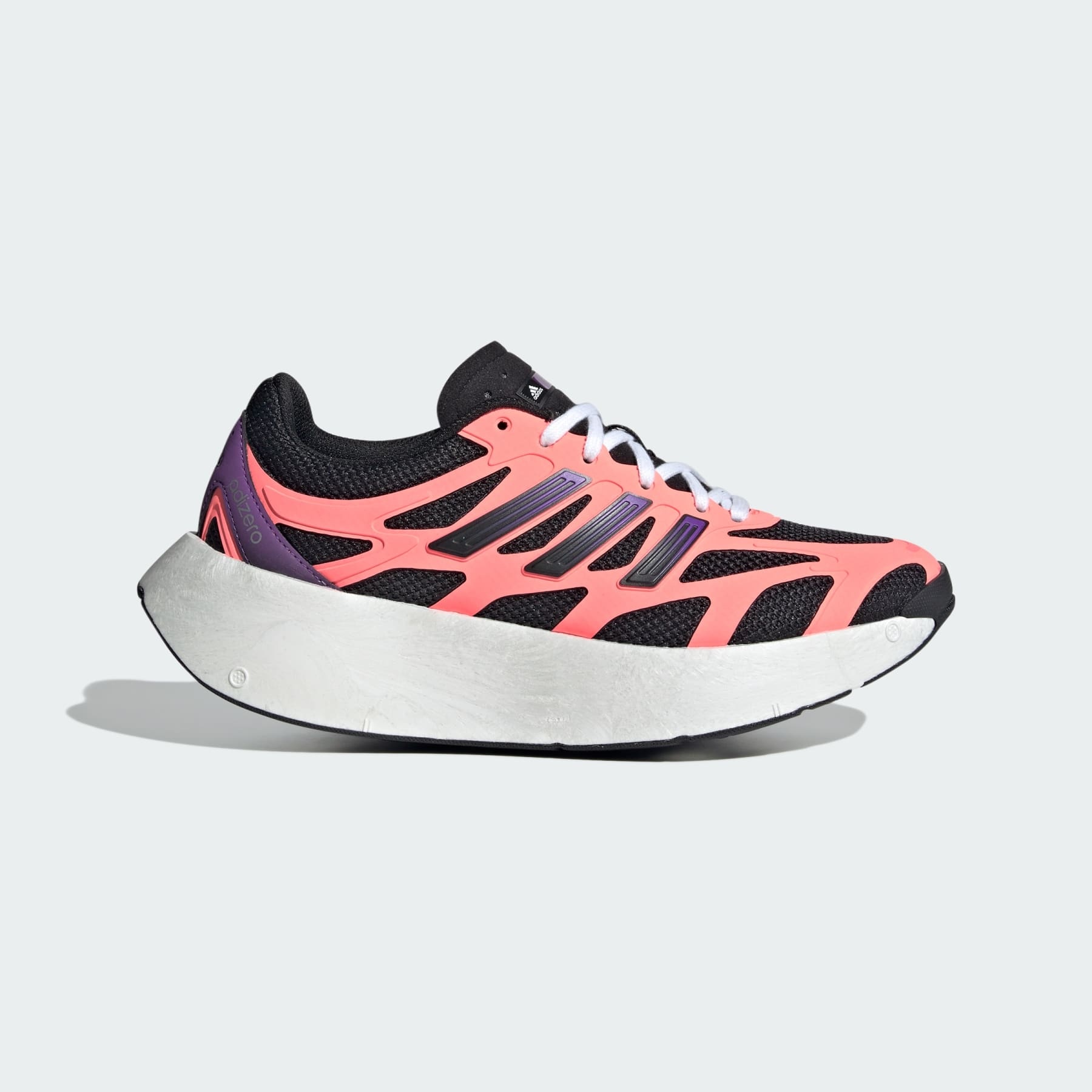 Lifestyle shoes inspired by an '00s racer. Channel the '00s with the Adizero Aruku Shoes, inspired by a favorite running shoe from the Adizero archives. These lifestyle sneakers are designed around the notion of perpetual motion, with a rocker shape and soft Swirlfoam cushioning. Let the retro-inspired silhouette and minimal branding speak for themselves as you chase the horizon in sporty style and comfort. For those always on the move, these shoes become a natural extension of the journey. Details - Regular fit - Lace closure - Textile and synthetic upper - Textile lining - Rubber outsole - Imported - Product code: JP5567 - Product color: Core Black / Active Purple / Signal Coral