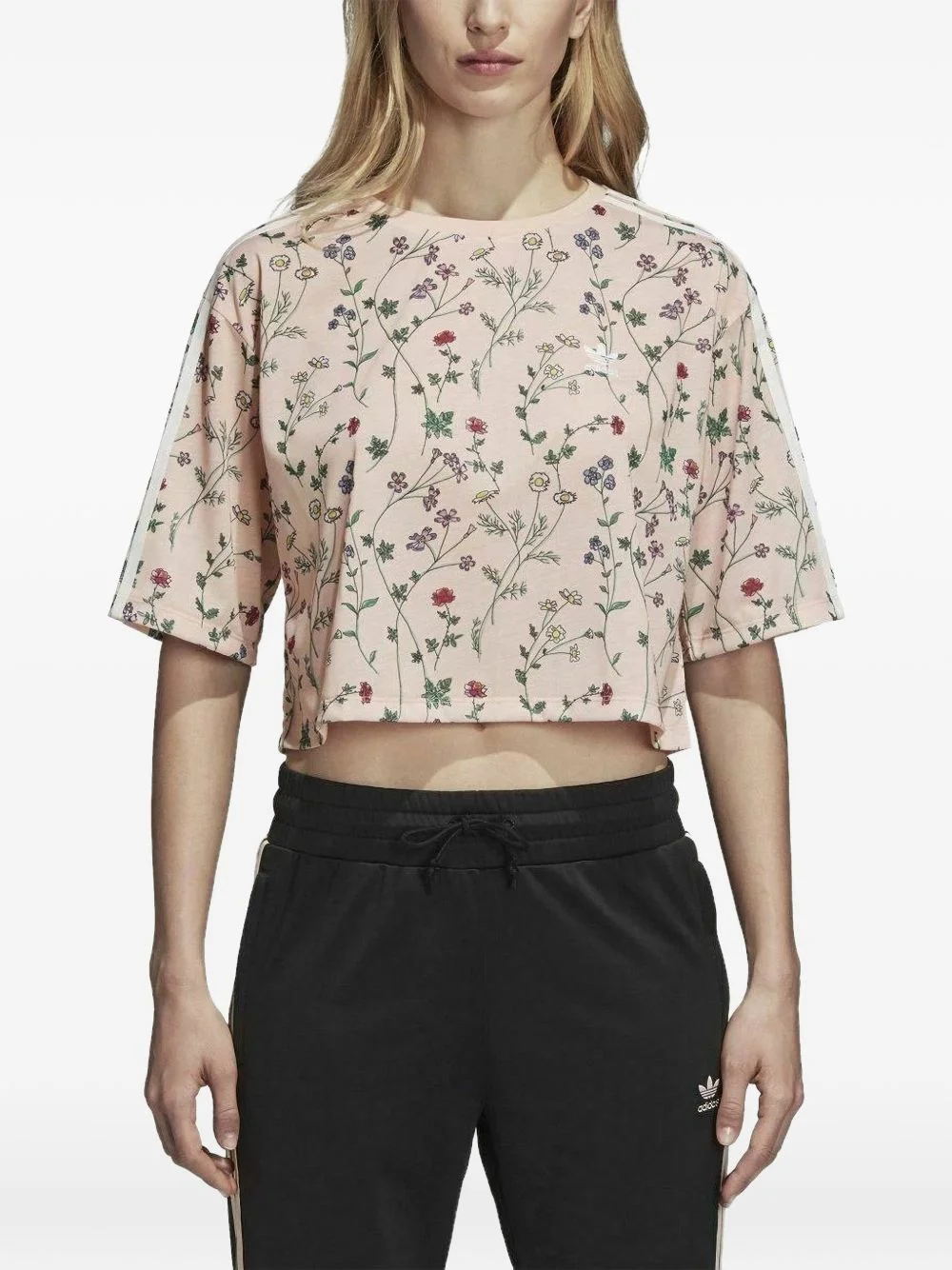 AOP floral-print T-shirt Highlights - Pink and multicolour - Floral print - Cropped style - Short sleeves - Round neck - Stripe detail Imported Composition Cotton 100% Washing instructions Read Manufacturer Guidelines