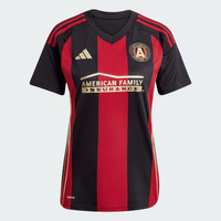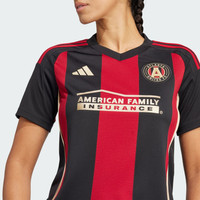 A fan jersey with ATL UTD's iconic stripes, made with recycled materials. 5-Stripes. Five pillars that represent Atlanta United FC's identity. The adidas jersey fans wear at the Mercedes-Benz Stadium, this soccer top displays ATL UTD's famous red and black home kit design. With soft fabric and golden details, it feels as good as it looks. A sewn-on club crest and "Atlanta United" back-neck sign-off show you belong. This product is made with 100% recycled materials. By reusing materials that have already been created, we help to reduce waste and our reliance on finite resources and reduce the footprint of the products we make. Details - Regular fit - V-neck - 100% polyester (recycled) - AEROREADY - Mesh side panels - Atlanta United FC sewn-on crest - Imported - Product code: IV5093 - Product color: Black / Team Victory Red
