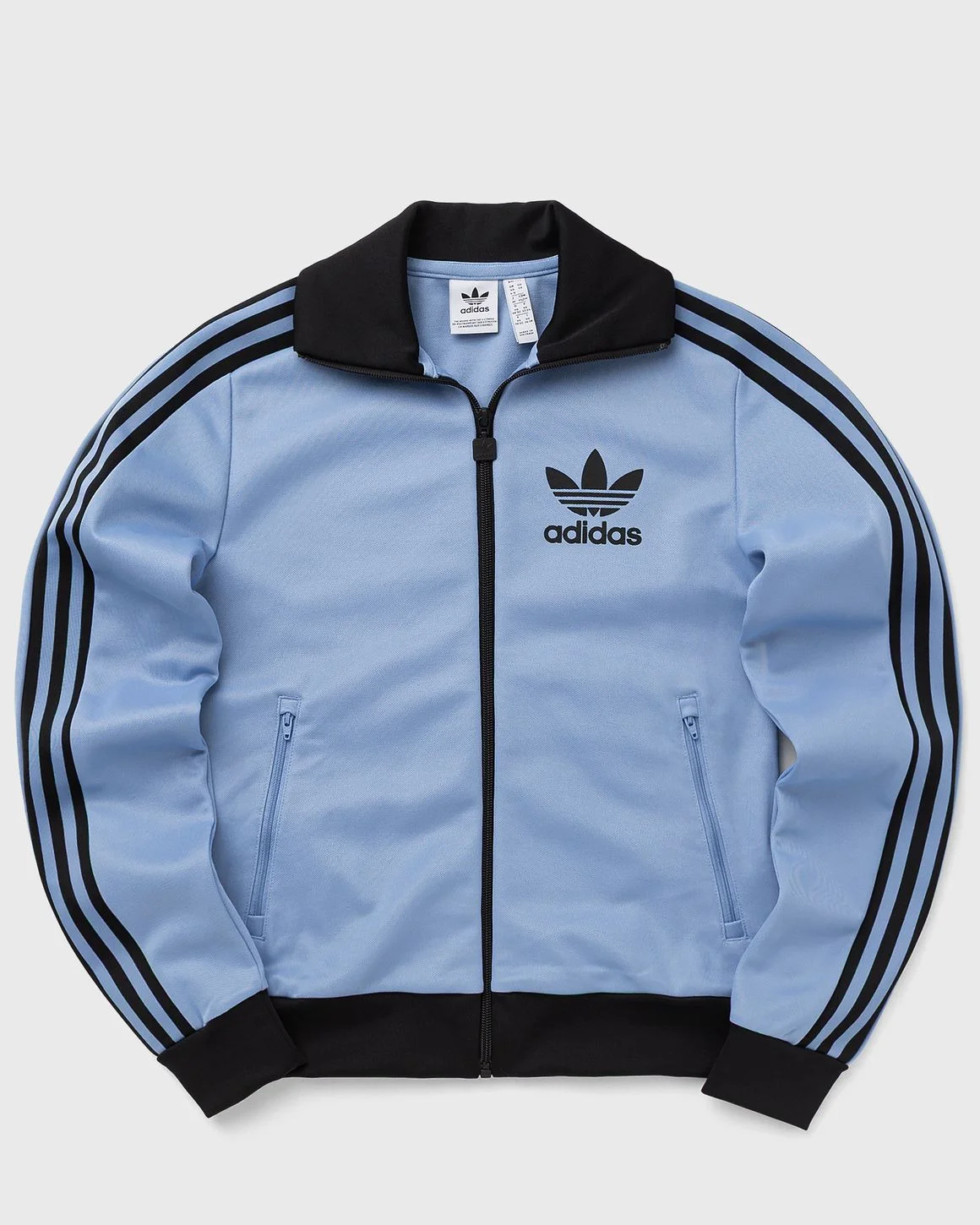 Inspired by the 80s, the adidas Beckenbauer Track Top combines modern style with an authentic 3-Stripes look. It is made from a soft cotton blend, with a slim fit and full-length zipper. The contrasting trims and an iconic Trefoil logo complete the design. - Stand collar - Full-length zipper - Side zipper pockets This product is partly made of certified recycled material. Get sustainable products from Adidas now at BSTN! Article Number: JX7851 Gender: Women Color: ASHBLU/BLACK Material: 52% Cotton, 48% Polyester