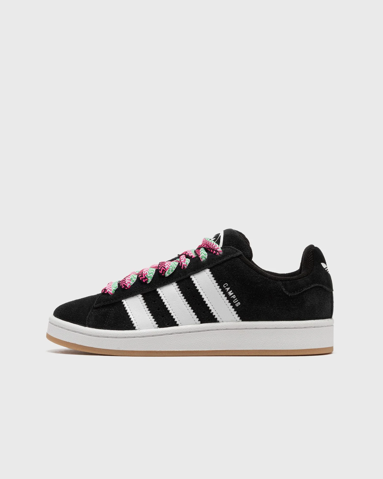 The adidas Campus 00s revisits the legendary elements of the Campus 80 and gives them a modern skater touch. It is as robust as ever and fits your foot perfectly. The suede upper provides even more durability and a secure hold. College-style colorblocking, graphics and branding create a unique design for the next generation of sneakerheads. - Laces - Suede upper - Textile lining - Rubber outsole Article number: JH7272 Gender: men,women Color: CBLACK/LUCPNK/FTWWHT Material: 30% Rubber, 70% Leather