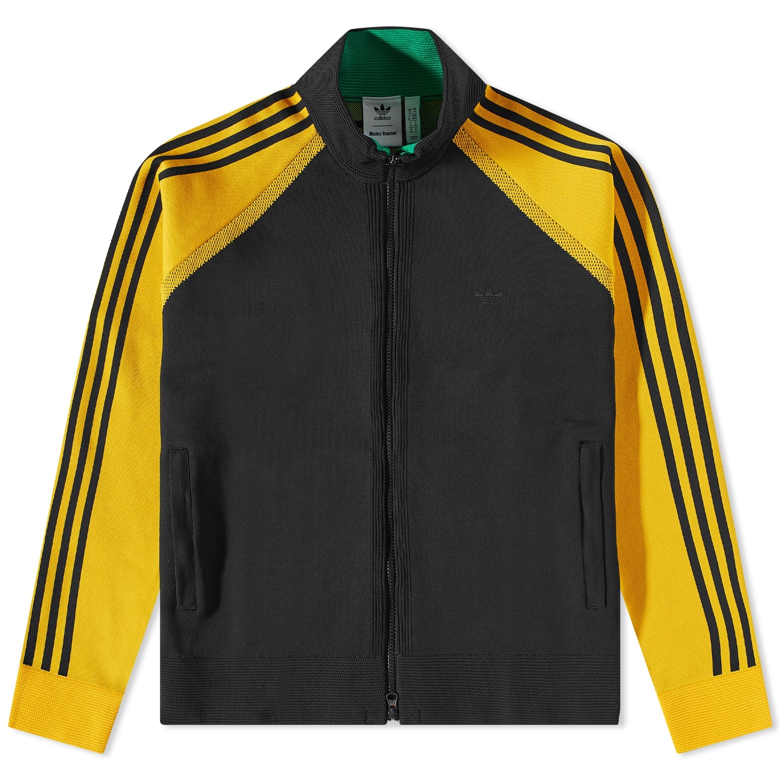 adidas and Wales Bonner come together in their latest collaboration for a celebration of nostalgia and Caribbean colours. Perfect for running track and wearing with the collection’s sweatpants, this track top is given a sleek black colourway with contrasting Collegiate Gold 3-Stripes down each arm. If you look close you’ll spy the adidas vintage Trefoil branding as well as the Wales Bonner logo embroidered on the back. - 100% Polyester - High Collar - Zip Closure - 2 Hand Pockets - Ribbed Trims - Embroidered Branding