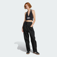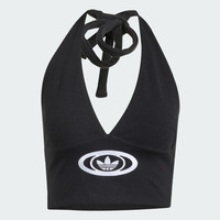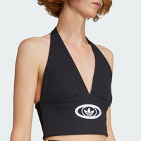 A chic yet cozy ribbed halter top. Feminine meets sporty in this adidas halter top. The slim fit hugs your body, while the v-neck cut and the Campus logo cut-out adds some edge. Ties at the back neck allow for a customized fit. Pair this top with your favorite high-waisted jeans or bike shorts, or dress it up with a skirt and heels. Details - Slim fit - 47% viscose, 43% cotton, 10% elastane - Strappy halter neck - Imported - Product code: KC8802 - Product color: Black