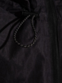 drawstring high-neck jacket Highlights - Black - Stand collar - Drawstring fastening - Zip closure - Long sleeves - Flap pockets Imported Composition Recycled Polyester 100% Washing instructions Read Manufacturer Guidelines
