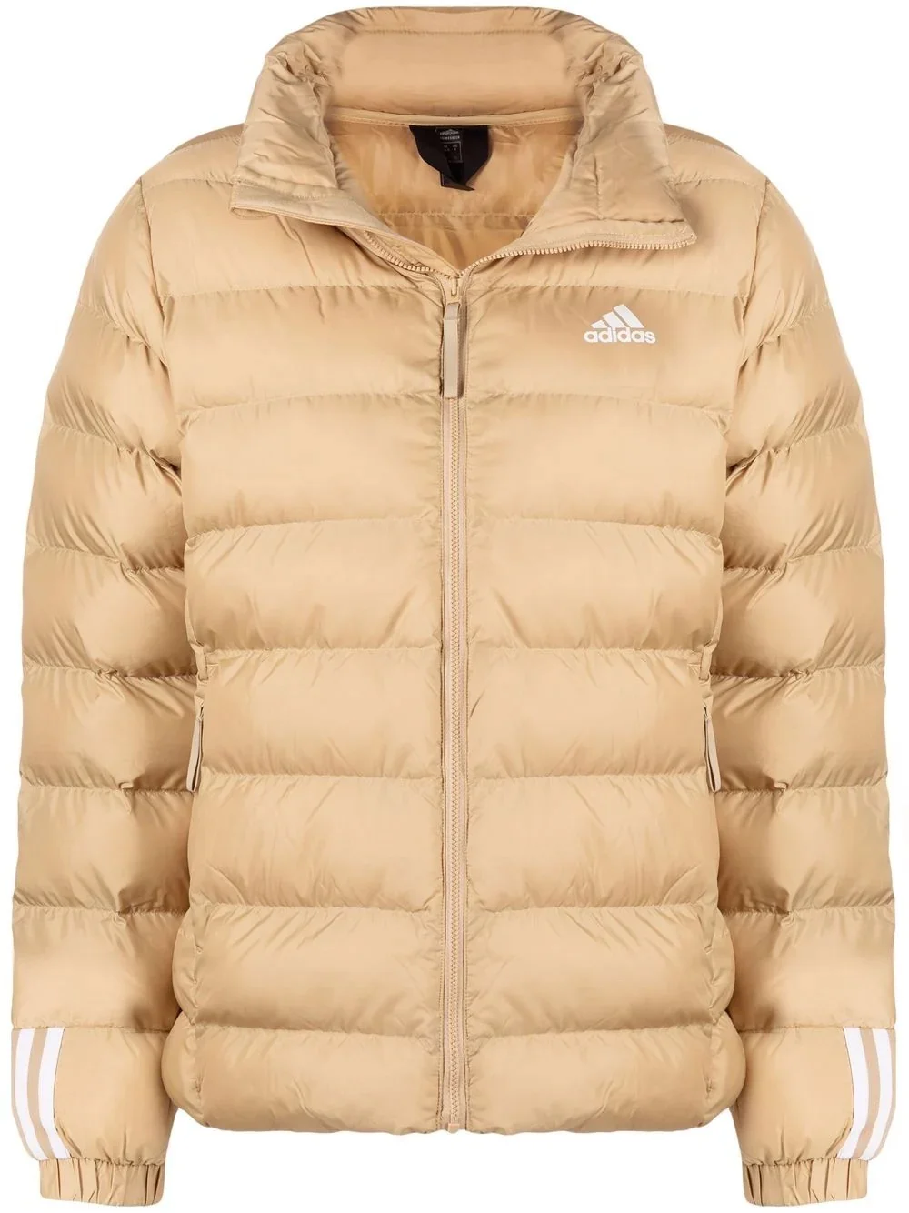 embroidered-logo padded jacket beige padded design embroidered logo at the chest side stripe detailing front zip fastening long sleeves two side zip-fastening pockets Imported Composition Lining: Recycled Polyester 100% Outer: Polyester 100% SIZE & FIT Model measurements Height 5 ft 10 in(1.77 m) Bust/Chest 32.28 in(82 cm) Hips 35.03 in(89 cm) Waist 25.19 in(64 cm) FittingInformation This piece fits true to size. We recommend you get your regular size Cut for a loose fit Made with a mid-weight non-stretch fabric Washing instructions Machine Wash