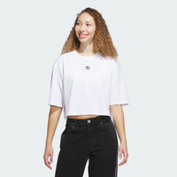 A versatile cropped tee with a loose fit and a soft cottony feel. Essentials street style meets maximum comfort in this adidas cropped tee. With an oversized fit and slightly longer sleeves, it's an easy go-to for laid-back days. Understated yet striking, the tee lets the Trefoil do the talking. Slip it on with high-waisted joggers or layer it over a long sleeve for extra cosiness. Effortless, versatile and crafted for creators, this tee remakes a basic into something spectacular. Details - Loose fit - Ribbed crewneck - 100% cotton - Cropped length - Imported - Product code: JJ3385 - Product color: White