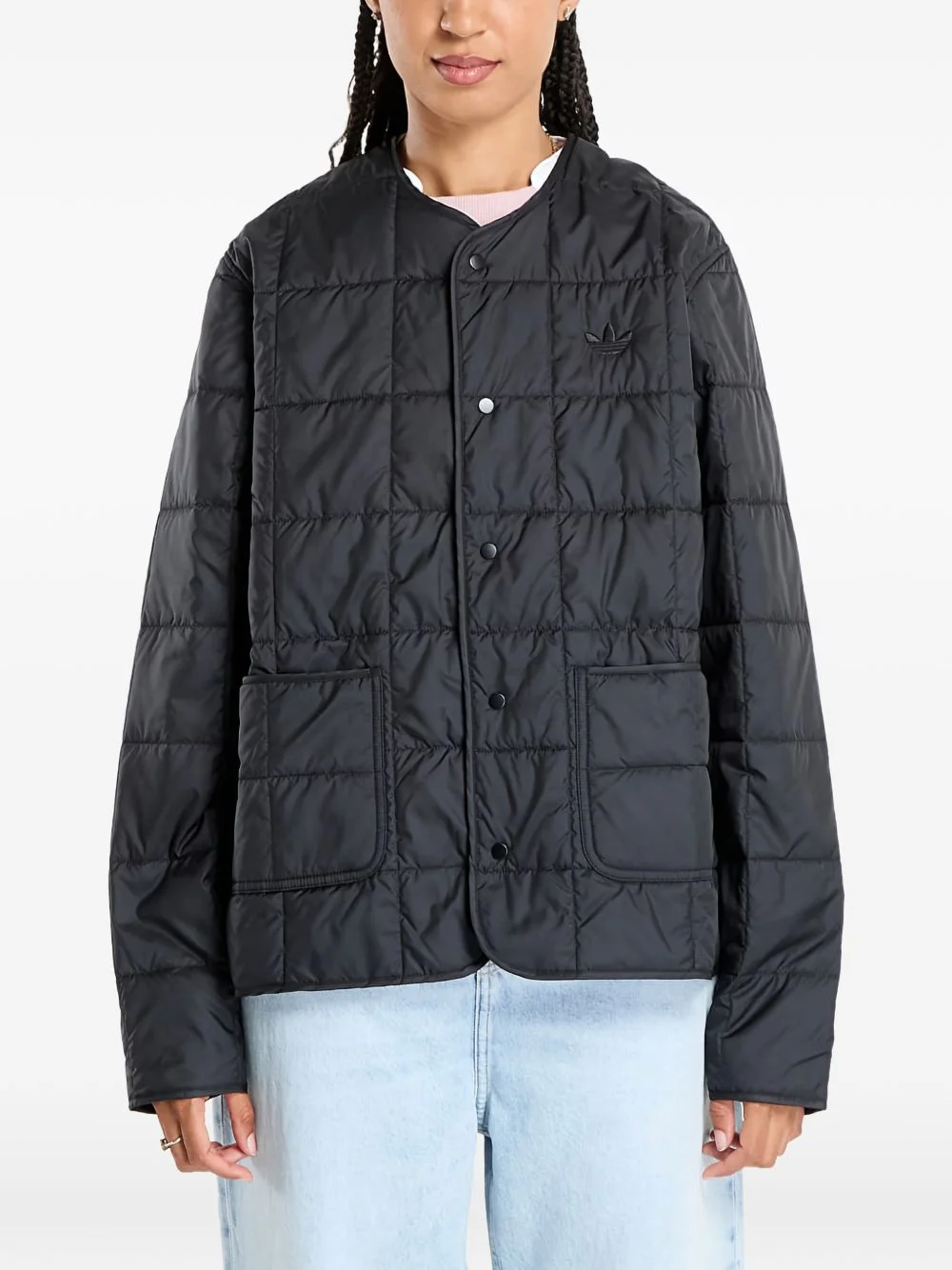 Essentials quilted jacket Highlights - Black - Quilted design - Front snap-button fastening - Two front patch pockets - Logo detail - Round neck Imported Composition Recycled Polyester 100% Washing instructions Read Manufacturer Guidelines