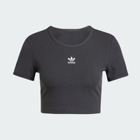 A slim-fit t-shirt with a crop length. Slip into the fitted contours of this adidas t-shirt and experience comfort on a whole new level. The fine rib knit and slim fit hug your shape while still allowing free range of movement. Its crop length makes it a versatile essential that's perfect for pairing with high-rise jeans for a night out or with joggers on chill days. Details - Slim fit - Round neck - 46% cotton, 45% viscose, 9% elastane - Imported - Product code: IY9664 - Product color: Black