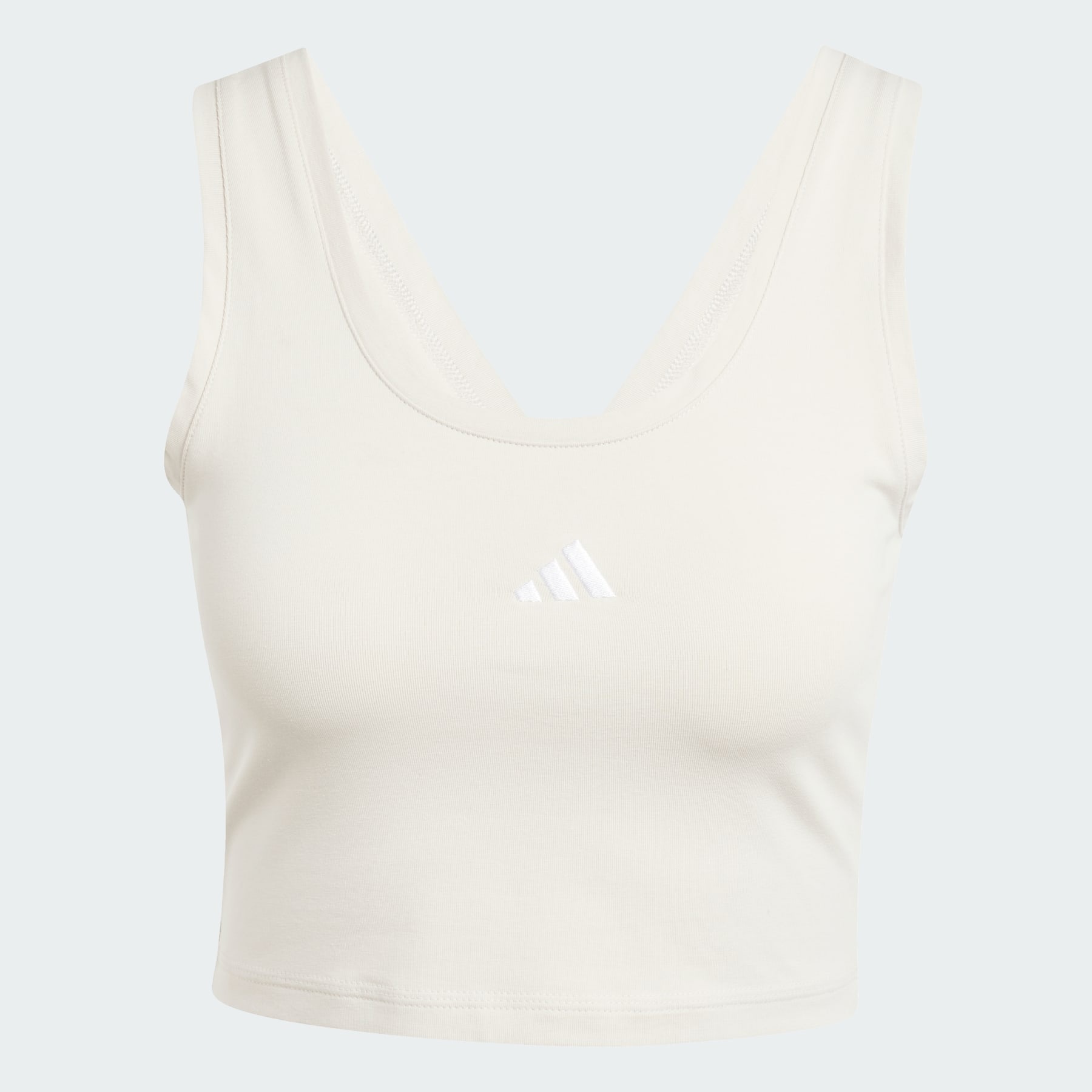 Show your adidas pride in this slim-fitting tank top. Lightweight and breezy, this adidas tank top is just what you need on warm days. Whether you're out exploring or just taking it easy, the soft fabric and slim fit keep you comfortable. A 3 Bar Logo on the chest signs off the look so you can rep your brand loyalty. Details - Slim fit - Scoop neck - 93% cotton, 7% elastane - Imported - Product code: JD0561 - Product color: Beige / White