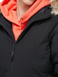 faux-fur hooded jacket Highlights - Black - Faux fur trim hood - Zip front fastening - Two patch pockets - Logo detail - Padded body Imported Composition Lining: Polyester 100% Outer: Recycled Nylon 100%, Artificial Fur 100%