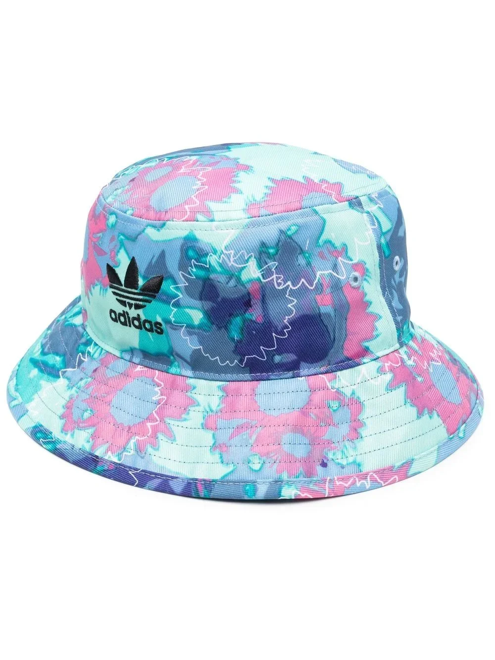floral-print Trefoil bucket hat light blue/turquoise/pink recycled polyester signature trefoil logo detail all-over floral print dropped narrow brim tonal stitching Imported Composition Recycled Polyester 100% SIZE & FIT Measurement BRIM 2.36 in(6 cm) CIRCUMFERENCE 21.65 in(55 cm) Washing instructions Machine Wash