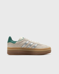 The adidas Gazelle Bold gives the iconic silhouette a modern upgrade with its platform sole. Jagged 3-Stripes and a suede upper stay true to the classic's signature look. - Suede upper - Synthetic lining - Rubber platform sole Article Number: JI0328 Gender: Women Color: OWHITE/SILVMT/CGREEN Material: Upper material: 100% Synthetic/Textile