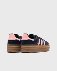 The adidas Gazelle Bold shoes are instant classics for the new generation. The platform sneakers have a smooth leather upper and suede accents and offer retro style and plenty of comfort. - Lace-up closure - Suede and leather upper - Synthetic lining - Staggered rubber outsole Article number: JR5951 Gender: women,kids Color: NINDIG/GLOPNK/GOLDMT Material: 30% Rubber, 70% Synthetic/Textile
