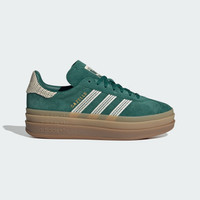 Platform sneakers with a soft suede upper. Step into style and comfort with these adidas Gazelle Bold Shoes. The premium suede upper provides a rich, polished look while remaining breathable, keeping you at ease whether you're on the go or going out. Underfoot, a rubber outsole offers dependable traction so you can stride confidently on any surface. An icon since the '60s, the Gazelle continues its reign with a crocheted makeover of the signature 3-Stripes and heel tab, infusing a touch of feminine flair into its timeless design. From work to weekend, these shoes elevate any outfit with their sleek yet playful charm. Details - Regular fit - Lace closure - Suede upper - Synthetic lining - Rubber outsole - Imported - Product code: JS3358 - Product color: Collegiate Green / Wonder White / Gold Metallic