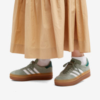 Make a statement with these Adidas Gazelle Bold sneakers, a nod to the brand's rich sports heritage. Here, buttery-soft suede uppers, a serrated variation on the iconic 3-Stripes, and metallic gold “Gazelle” stamp are all elevated by a triple-stacked outsole underfoot. What’s not to love? - Suede Uppers - Rubber Outsole