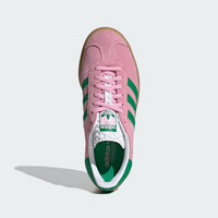 The classic Gazelle shoes take a bold stance. It wouldn't be a list of adidas' most iconic shoes without the Gazelle. First worn on indoor courts in the '70s, the suede shoe is gaining new fans to this day. Now the style you covet is lifted up to new heights. It's stacked three layers high, for a new perspective on the classic style. The details stay sporty with buttery-soft suede and serrated 3-Stripes. A metallic-gold "Gazelle" is the final stamp of our heritage. Details - Regular fit - Lace closure - Suede upper - Synthetic lining - Rubber outsole - Imported - Product code: IE0420 - Product color: True Pink / Green / Cloud White