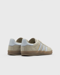 The adidas Originals Gazelle Indoor celebrates a piece of sneaker history. The highlight: the translucent gum sole, which gives the classic design a fresh touch. The suede upper ensures a high-quality look and timeless charm, while the textile lining offers comfort and the lacing guarantees a secure fit. - Upper made of leather and synthetic material - Textile insole - Rubber outsole Article number: JR2432 Gender: women Color: WONBEI/HALBLU/GUM5 Material: 30% Rubber, 70% Leather