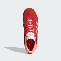 adidas Gazelle shoes with bright color pops. Since 1991, the adidas Gazelle shoes have been known for their timeless, versatile design. Their pigskin suede upper provides a premium look and feel, and the rubber outsole offers durable traction to keep you grounded. Once meant for training, this shoe is now a lifestyle staple. The laces are two-toned on the edges, adding a subtle twist. Details - Regular fit - Lace closure - Pigskin suede upper - Synthetic lining - Rubber outsole - Imported - Product code: JH7217 - Product color: Better Scarlet / Glow Pink / Gold Metallic
