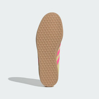 adidas Gazelle shoes with bright color pops. Since 1991, the adidas Gazelle shoes have been known for their timeless, versatile design. Their pigskin suede upper provides a premium look and feel, and the rubber outsole offers durable traction to keep you grounded. Once meant for training, this shoe is now a lifestyle staple. The laces are two-toned on the edges, adding a subtle twist. Details - Regular fit - Lace closure - Pigskin suede upper - Synthetic lining - Rubber outsole - Imported - Product code: JH7211 - Product color: Powder Yellow / Lucid Pink / Gum