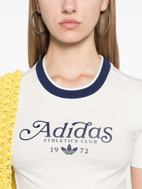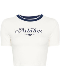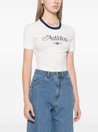 Graphic Badge T-shirt Highlights - Clowhi white - Cotton blend - Stretch-jersey - Contrasting trim - Ribbed crew neck - Short sleeves - Logo print to the front - Signature trefoil logo print to the front - Embroidered logo to the rear - Straight hem - Cropped Imported Composition Cotton 93%, Elastane 7% SIZE & FIT Model measurements Height 5 ft 9 in(1.75 m) Bust/Chest 30.7 in(78 cm) Hips 34.64 in(88 cm) Waist 23.22 in(59 cm) FittingInformation Designed for a slim fit that sits just away from the body offering a close yet comfortable fit Made from a midweight stretch fabric, this piece offers elasticity and flexibility when worn