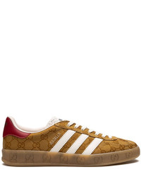 x Gucci Gazelle low-top sneakers Designed in collaboration with Gucci, these adidas Gazelle are covered in a signature GG Supreme canvas all over. This model has a classic low-top silhouette enhanced by a 3-Stripe insert on the sides and a contrasting heel counter. Underneath, the gum-rubber sole adds a retro touch to the pair. Highlights - Light brown - Leather - Classic gg canvas - Embroidered logo to the side - Signature 3-stripes logo - Contrasting heel counter - Round toe - Front lace-up fastening - Logo-print tongue - Branded insole - Gum-rubber sole - These styles are supplied by a premium sneaker marketplace. stocking only the most sought-after footwear, they source and curate some of the most hard to find sneakers from around the world. Imported Composition Lining: Leather 100% Outer: Canvas 100% Sole: Rubber 100%
