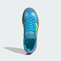 Archival court shoes return in smooth satin. A cult favorite, the adidas Handball Spezial Shoes debuted in 1979 for elite handball players. These low-profile lifestyle sneakers now step out in smooth satin for a luxe look and feel. They come complete with signature 3-Stripes and Spezial details. Details - Regular fit - Lace closure - Satin upper with suede overlays - Textile lining - Rubber outsole - Imported - Product code: JH5658 - Product color: Sky Rush / Solar Yellow / Lucid Pink