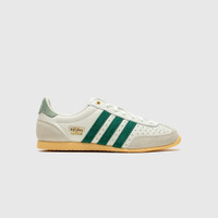 - JI2663 - Off White/Collegiate Green/Orange Tint - Leather upper - Premium suede overlays - Suede three-stripe branding across the lateral and medial sidewalls - Debossed branding on the lateral heel - Leather tongue with branded tongue tag - Suede heel with debossed branding - Lace closure - Rubber outsole