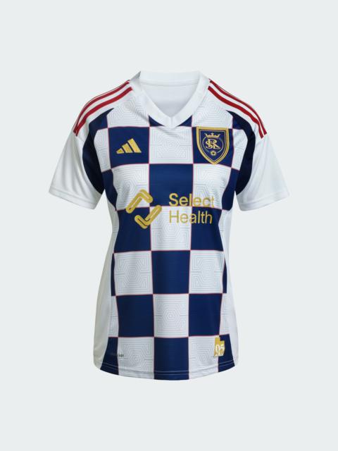 A Galaxy supporter jersey with LA sunset vibes, made with recycled materials. Built to shine, this adidas LA Galaxy away jersey displays the radiant hues of a spectacular Los Angeles sunset. Soft fabric and moisture-managing AEROREADY combine to keep you comfortable while you shout for your soccer heroes. An embroidered badge and special sign-off ensure your fandom remains front and center. This product is made with 100% recycled materials. By reusing materials that have already been created, we help to reduce waste and our reliance on finite resources and reduce the footprint of the products we make. Details - Regular fit - Crewneck - 100% polyester (recycled) - AEROREADY - Side mesh inserts - LA Galaxy sewn-on crest - Imported - Product code: IV9854 - Product color: Noble Ink