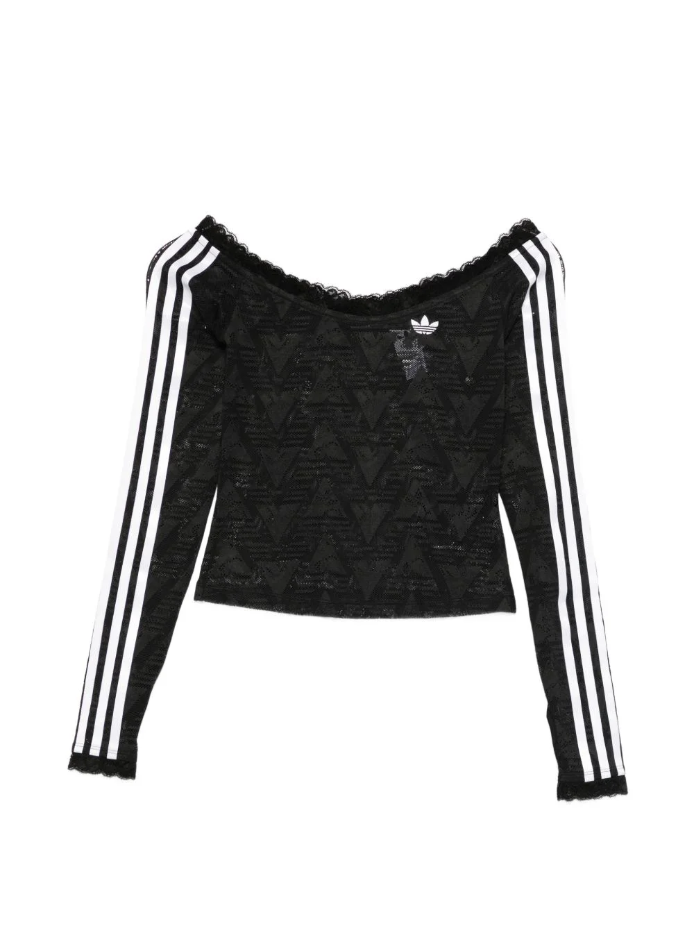 lace-trim striped top Highlights - Black - Lace trim - Long sleeves - Triple stripe detail - Textured design Imported Composition Recycled Polyester 92%, Elastane 8% Washing instructions Machine Wash