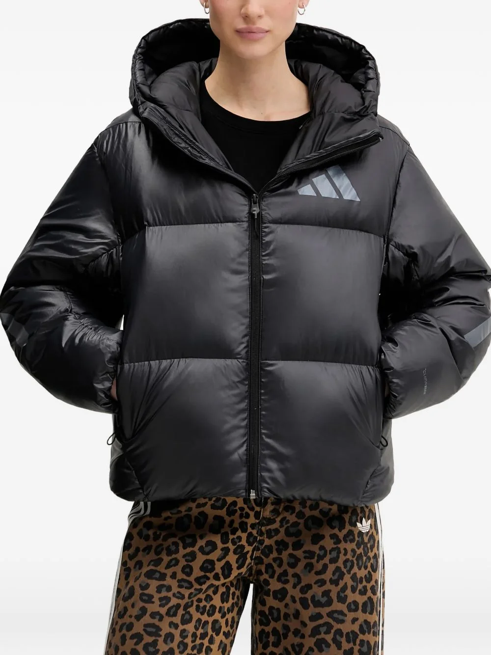 logo-print hooded jacket Highlights - Black - Logo detail - Front zip fastening - Hooded - Quilted Imported Composition Outer: Recycled Polyester 100% Lining: Duck Down 80%, Duck Feathers 20% Washing instructions Machine Wash