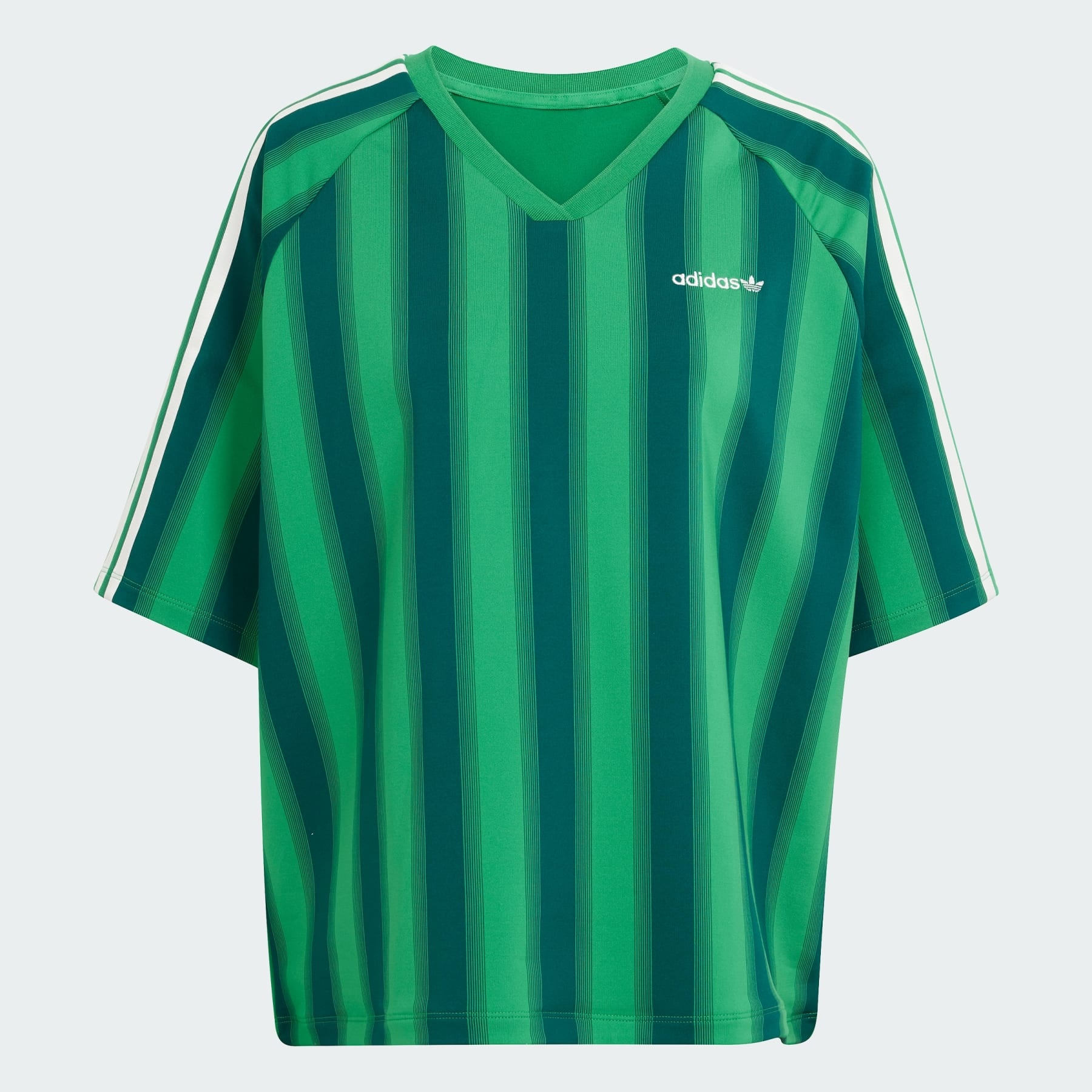 An oversize tee inspired by '90s soccer style. This adidas t-shirt is all about maximum comfort and laid-back vibes. The loose fit gives you room to move, and a linear Trefoil logo on the chest brings an iconic sporty touch. Pair it with your favorite shorts or leggings for an easy weekend outfit. Details - Oversized fit - Crewneck - 86% polyester (recycled), 14% elastane - Imported - Product code: JW6022 - Product color: Green
