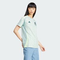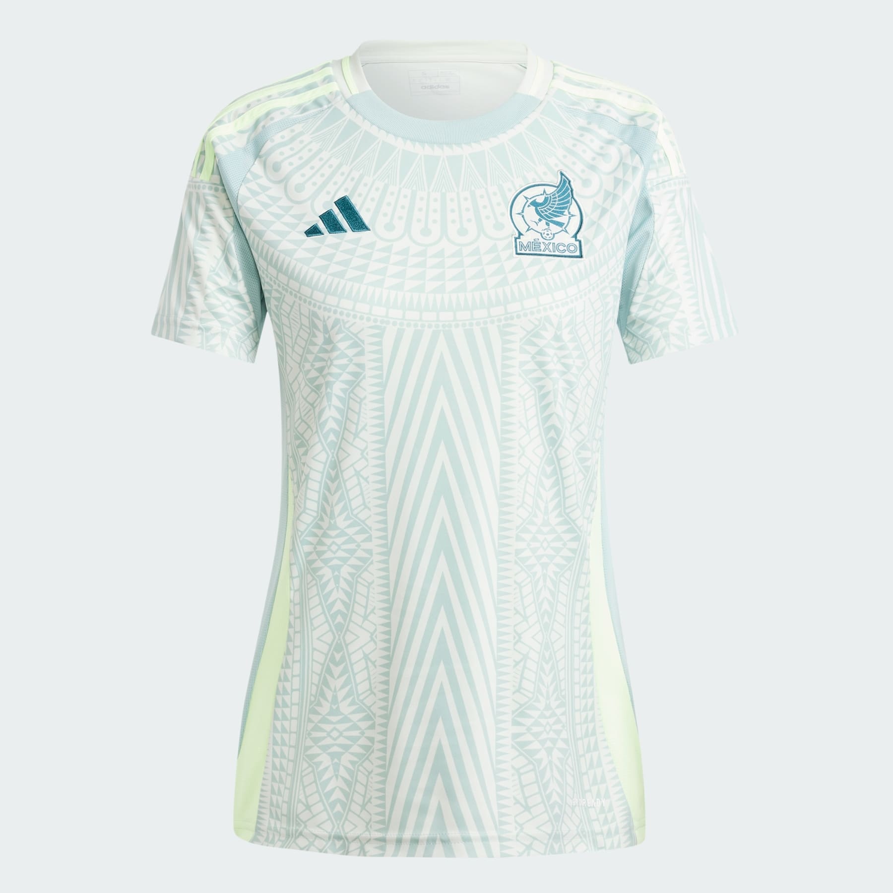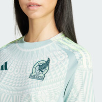 An eye-catching jersey for Mexico away games, made with recycled materials. Created for powerful shows of support. Inspired by Mexico's coat of arms, this adidas away jersey stands out with snakeskin-style graphics. Built to keep fans comfortable, it includes moisture-managing AEROREADY and mesh panels that offer targeted breathability. A woven team crest and eagle-serpent sign-off leave no doubt where your soccer allegiance lies. The main material of the jersey is 100% recycled polyester excluding trimming and decoration. Details - Regular fit - Ribbed crewneck - 100% polyester (recycled) interlock - Side, sleeve inserts and lower back: 100% recycled polyester waffle - AEROREADY - Mesh side inserts - Mexico woven crest - Eagle-serpent artwork below back collar - Imported - Product code: IP6388 - Product color: Linen Green