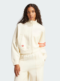A laid-back track top made in part with a blend of recycled and renewable materials. With an oversized silhouette and ribbed cuffs, this track jacket moves with you. The cotton-blend fabric keeps comfort at the core, while signature details like 3-Stripes around one sleeve connect you to adidas Originals style. Layer it over a crop top or wear it solo — either way, you've got a track top that's made to go the distance. By choosing recycled, we are able to reuse materials that have already been created, which helps to reduce waste. Renewable materials choices will help us to remove our reliance on finite resources. Our products made with a blend of recycled and renewable materials feature at least 70% total of these materials. Details - Loose fit - Two-way full zip with stand-up collar - 53% cotton, 47% polyester (recycled) - Side pockets - Ribbed cuffs and hem - Contains a minimum of 70% recycled and renewable content - Imported - Product code: JI8493 - Product color: Cream White / Real Coral