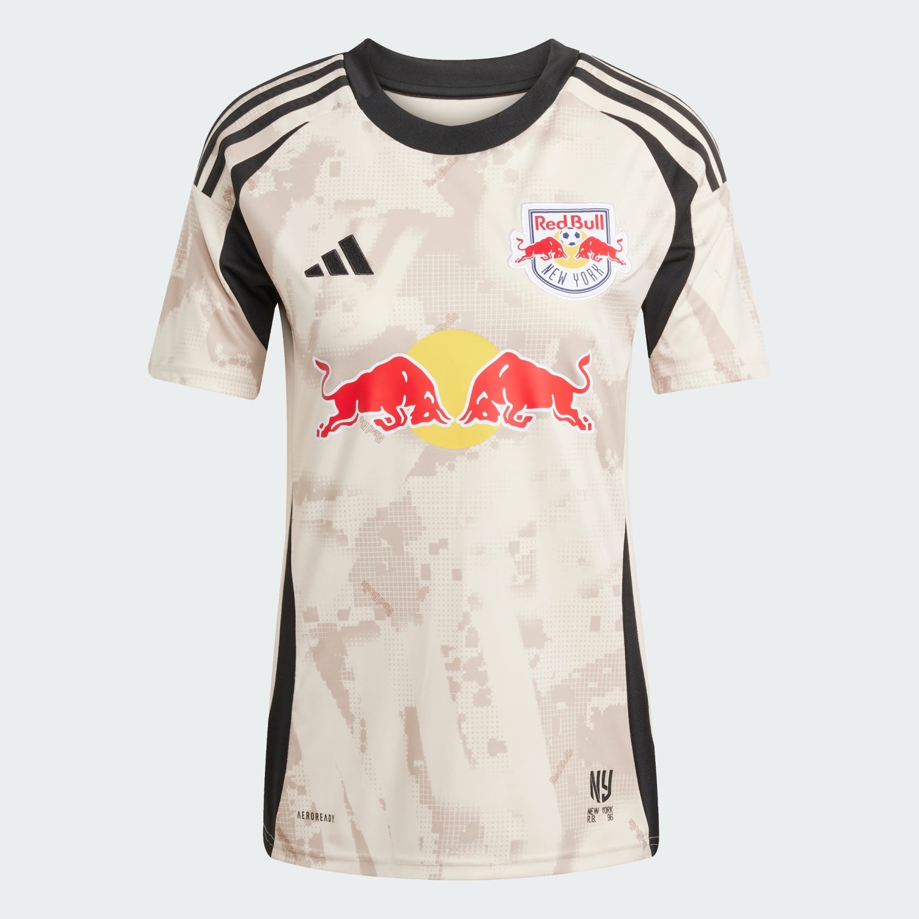 A Red Bulls fan jersey with a desert camo design, made with recycled materials. Channeling the energy and edge of New York City streetwear, this Red Bulls away jersey from adidas adopts a desert camo design with "NY" graphics hiding in plain sight. Moisture-managing AEROREADY and soft fabric make it perfect for watching the soccer action. A sewn-on badge and club sign-off complete the winning look. This product is made with 100% recycled materials. By reusing materials that have already been created, we help to reduce waste and our reliance on finite resources and reduce the footprint of the products we make. Details - Regular fit - Crewneck - 100% polyester (recycled) - AEROREADY - Side mesh inserts - New York Red Bulls sewn-on crest - Imported - Product code: IV9902 - Product color: Halo Ivory