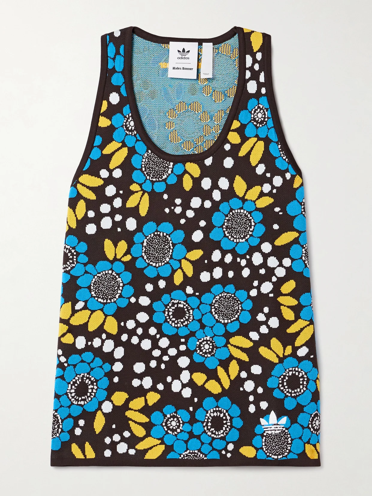Part of its collaboration with Wales Bonner, adidas Originals' tank is jacquard-knitted with retro-inspired flowers- a key motif seen throughout the collection. It has a slim fit and is embroidered with a subtle 'Trefoil' logo along the hem. Large to size. See Size & Fit notes.