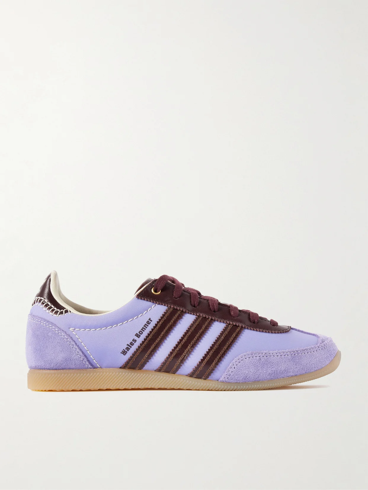 Wales Bonner's collaborations with adidas Originals always sell out. From their latest instalment, these 'Japan' sneakers are made from lilac canvas with tonal suede covering the toe and heel. They're decorated with contrasting leather stripes and whipstitching on the back. This item is in men's sizing. Please refer to Size & Fit notes.