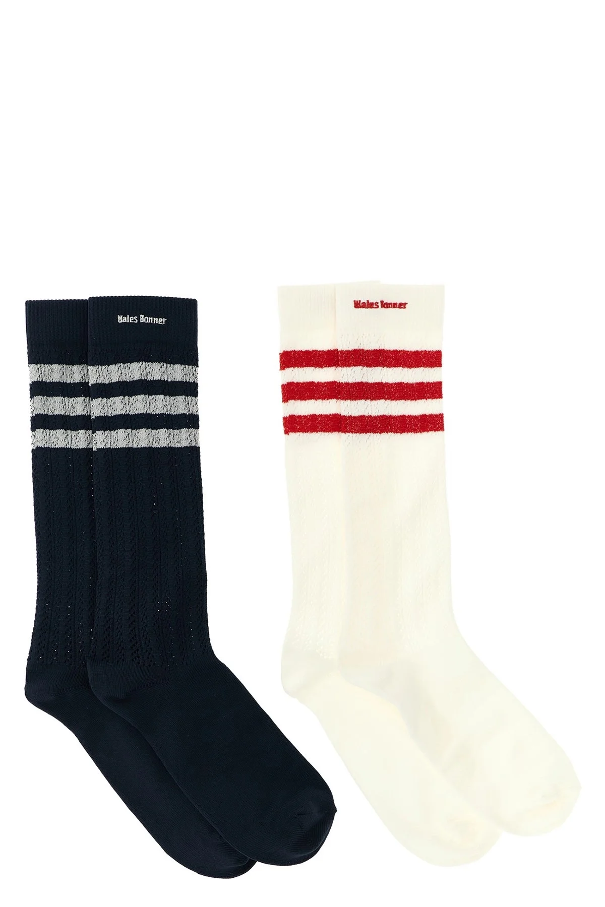 cod. KB2324CWHITENBROWN A set of 2 long socks Adidas Originals by Wales Bonner 3S in perforated cotton with contrast details. ITEM CANNOT BE RETURNED Color: Multicolor Size & Fit: true to size fit Composition: 79% cotton 18% pet 3% elastane Made in: Turkey