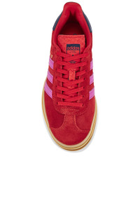 - Suede upper with rubber gum sole - Lace-up front - Signature three leather stripes at outer panels with foiled GAZELLE logo at outer panel - Printed adidas logo at textured tongue - Padded low-cut collar with leather back counter - Approx 45mm/ 1.75 inch platform - Revolve Style No. AORI-WZ140 - Manufacturer Style No. JH9665