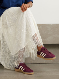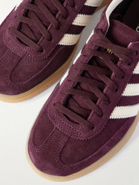 adidas Originals' 'Handball Spezial' sneakers riff on sporty archival designs from the '70s and '80s. Made from velvety suede, they have contrasting cream leather stripes and bouncy rubber soles. Show yours off with cropped hems. Size & Fit Fits true to size, please refer to Adidas size guide below: - UK 3.5 = US 5/ EU 36 - UK 4 = US 5.5/ EU 36.7 - UK 4.5 = US 6/ EU 37.3 - UK 5 = US 6.5/ EU 38 - UK 5.5 = US 7/ EU 38.7 - UK 6 = US 7.5/ EU 39.3 - UK 6.5 = US 8/ EU 40 - UK 7 = US 8.5/ EU 40.7 - UK 7.5 = US 9/ EU 41.3 - UK 8 = US 9.5/ EU 42 - UK 8.5 = US 10/ EU 42.7 - UK 9 = US 10.5/ EU 43.3 - UK 9.5 = US 11/ EU 44 - UK 10 = US 11.5/ EU 44.7 - UK 10.5 = US 12/ EU 45.3 - UK 11 = US 12.5/ EU 46 - UK 11.5 = US 13/ EU 46.7 - UK 12 = US 13.5/ EU 47.3 Details & Care - Rubber sole measures approximately 20mm/ 1 inch - Maroon suede, cream leather (Cow) - Lace-up front - adidas Originals follows its own size guide, therefore the size stated on the box will differ from the one provided in our size chart. To receive your correct fit, please refer to Size & Fit notes