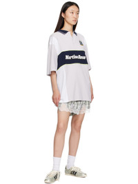 Low-top grained leather sneakers. · Perforations throughout · Lace-up closure · Logo patch at tongue · Padded collar · Signature serrated stripes at sides · Logo stamp at outer side and heel tab · Satin lining · Treaded rubber sole Supplier color: Alumina/Core black/Cream white Upper: leather. Sole: rubber. Made in Viet Nam 252751F128080