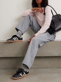 adidas Originals' 'Samba' sneakers have remained a timeless, iconic style since they first launched in 1950. Sporting all the classic details, this 'LT' iteration is made from contrasting leather and has fold-over tongues and quilted stitching at the uppers, which is inspired by '80s models. Size & Fit Fits true to size, please refer to Adidas size guide below: - UK 3.5 = US 5/ EU 36 - UK 4 = US 5.5/ EU 36.7 - UK 4.5 = US 6/ EU 37.3 - UK 5 = US 6.5/ EU 38 - UK 5.5 = US 7/ EU 38.7 - UK 6 = US 7.5/ EU 39.3 - UK 6.5 = US 8/ EU 40 - UK 7 = US 8.5/ EU 40.7 - UK 7.5 = US 9/ EU 41.3 - UK 8 = US 9.5/ EU 42 - UK 8.5 = US 10/ EU 42.7 - UK 9 = US 10.5/ EU 43.3 - UK 9.5 = US 11/ EU 44 - UK 10 = US 11.5/ EU 44.7 - UK 10.5 = US 12/ EU 45.3 - UK 11 = US 12.5/ EU 46 - UK 11.5 = US 13/ EU 46.7 - UK 12 = US 13.5/ EU 47.3 Details & Care - Rubber sole measures approximately 15mm/ 0.5 inches - Black and white leather - Lace-up front - Designer color: Core Black/ Cream White/ Gum - adidas Originals follows its own size guide, therefore the size stated on the box will differ from the one provided in our size chart. To receive your correct fit, please refer to Size & Fit notes