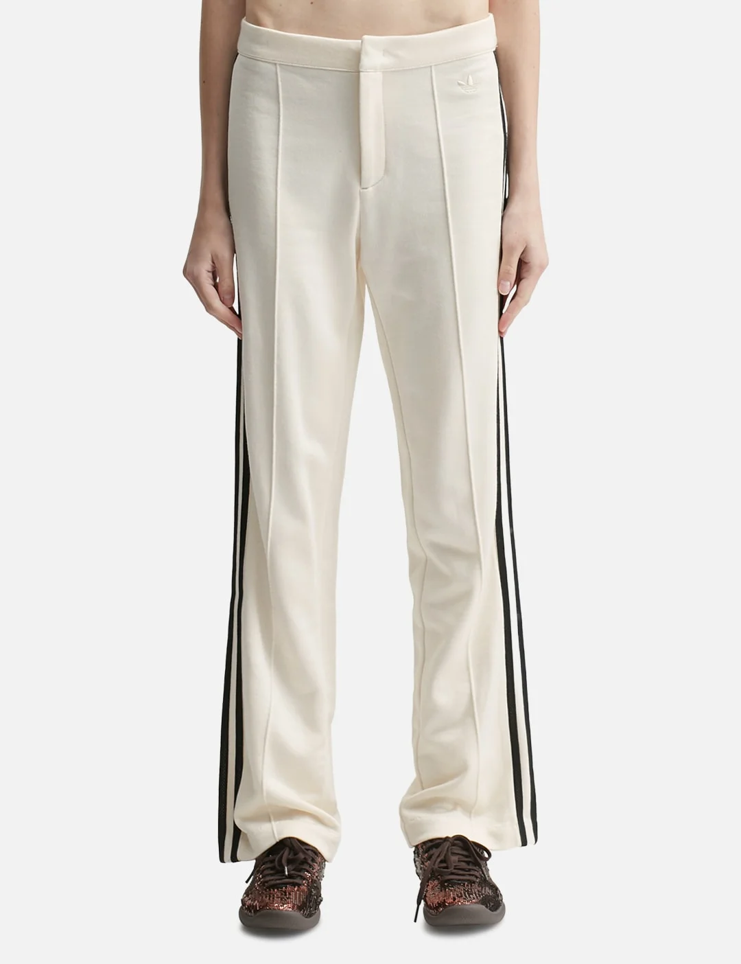 - adidas Originals - adidas Originals x Wales Bonner FT Track Pant - adidas Originals x Wales Bonner collaboration - Cotton and viscose blend exterior - Terry loop construction - Elasticated waistband - YKK zip fly - Contrast 3-strips on sides - Trefoil logo embroidery on the left - One rear welt pocket - Embroidered Wales Bonner logo above back pocket - Color: Wonder White - Material: 54% Cotton, 46% Viscose - See more Pants and Clothing - Model wears size S - Model measures: Height 177cm, Chest 30.5’’/77.5cm, Waist 25.5’’/65cm, Hip 35’’/89cm - Vendor Code: KD0352