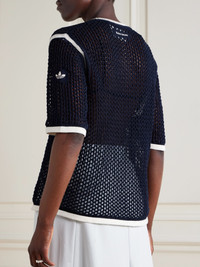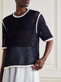 Open-knit cotton-blend T-shirt Navy