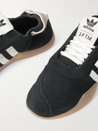 Designed with Australian label Song For The Mute, Adidas' 'Taekwondo Mei' sneakers are modelled on flexible footwear used for the sparring mat. Made from suede, they have contrast accents on the heel and the iconic '3-Stripes' printed on the sides. The rubber soles are curved to mold to your feet. Size & Fit Fits true to size, please refer to adidas size guide below: - UK 3.5 = US 5/ EU 36 - UK 4 = US 5.5/ EU 36.7 - UK 4.5 = US 6/ EU 37.3 - UK 5 = US 6.5/ EU 38 - UK 5.5 = US 7/ EU 38.7 - UK 6 = US 7.5/ EU 39.3 - UK 6.5 = US 8/ EU 40 - UK 7 = US 8.5/ EU 40.7 - UK 7.5 = US 9/ EU 41.3 - UK 8 = US 9.5/ EU 42 - UK 8.5 = US 10/ EU 42.7 - UK 9 = US 10.5/ EU 43.3 - UK 9.5 = US 11/ EU 44 - UK 10 = US 11.5/ EU 44.7 - UK 10.5 = US 12/ EU 45.3 - UK 11 = US 12.5/ EU 46 - UK 11.5 = US 13/ EU 46.7 - UK 12 = US 13.5/ EU 47.3 Details & Care - Rubber sole measures approximately 20mm/ 1 inch - Black and white suede (Cow) - Lace-up front - adidas Originals follows its own size guide, therefore the size stated on the box will differ from the one provided in our size chart. To receive your correct fit, please refer to Size & Fit notes