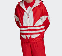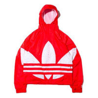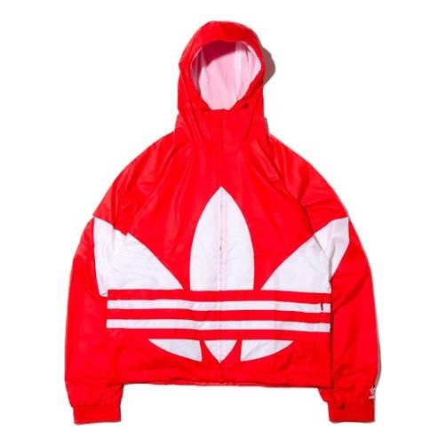 adidas originals Big trefoil Stripe Large Logo hooded Casual Jacket Red FM7076