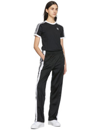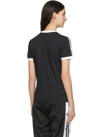 Short sleeve cotton jersey T-shirt in black featuring signature stripe trim and embroidered logo in white. Crewneck collar and cuffs. Supplier color: Black 100% cotton.