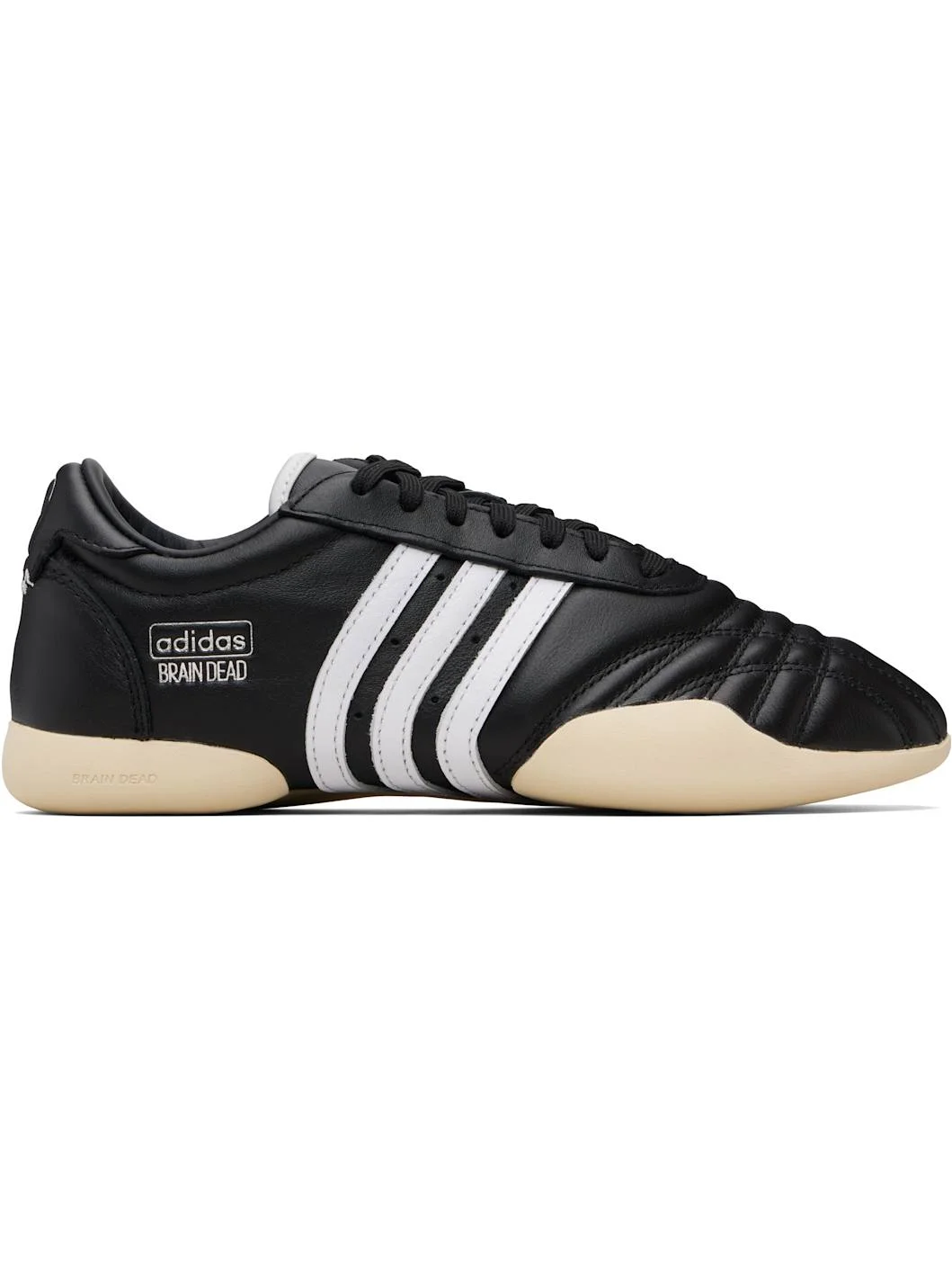 Low-top buffed leather sneakers. · Quilted detailing at toe · Logo-embossed velcro panel at vamp · Flap pocket at single vamp · Cutout at single vamp · Concealed lace-up closure · Padded tongue and collar · Perforations at sides · Signature stripes and embossed logo at outer side · Embossed logo and topstitching at heel tab · Buffed leather lining · Treaded rubber sole Part of the adidas Originals x Brain Dead collaboration. Supplier color: Core black/Footwear white/Warm vanilla Upper: leather. Sole: rubber. Made in Viet Nam 261751F128037