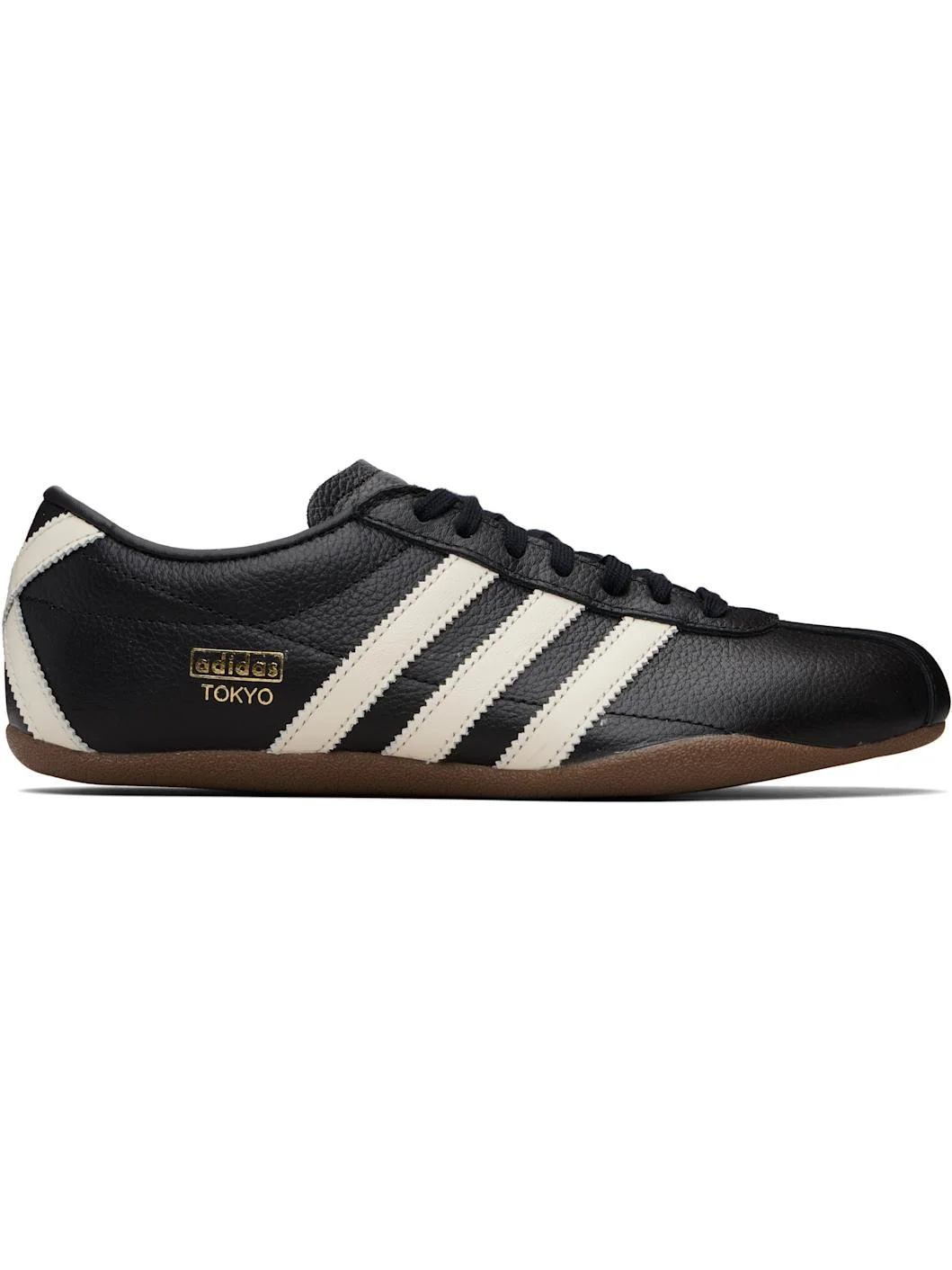 Low-top grained leather sneakers. · Lace-up closure · Logo stamp at tongue and outer side · Padded collar · Signature serrated stripes at sides and heel · Buffed leather lining · Crepe-rubber sole Supplier color: Core black/Off white Upper: leather. Sole: rubber. Made in Viet Nam 261751F128180