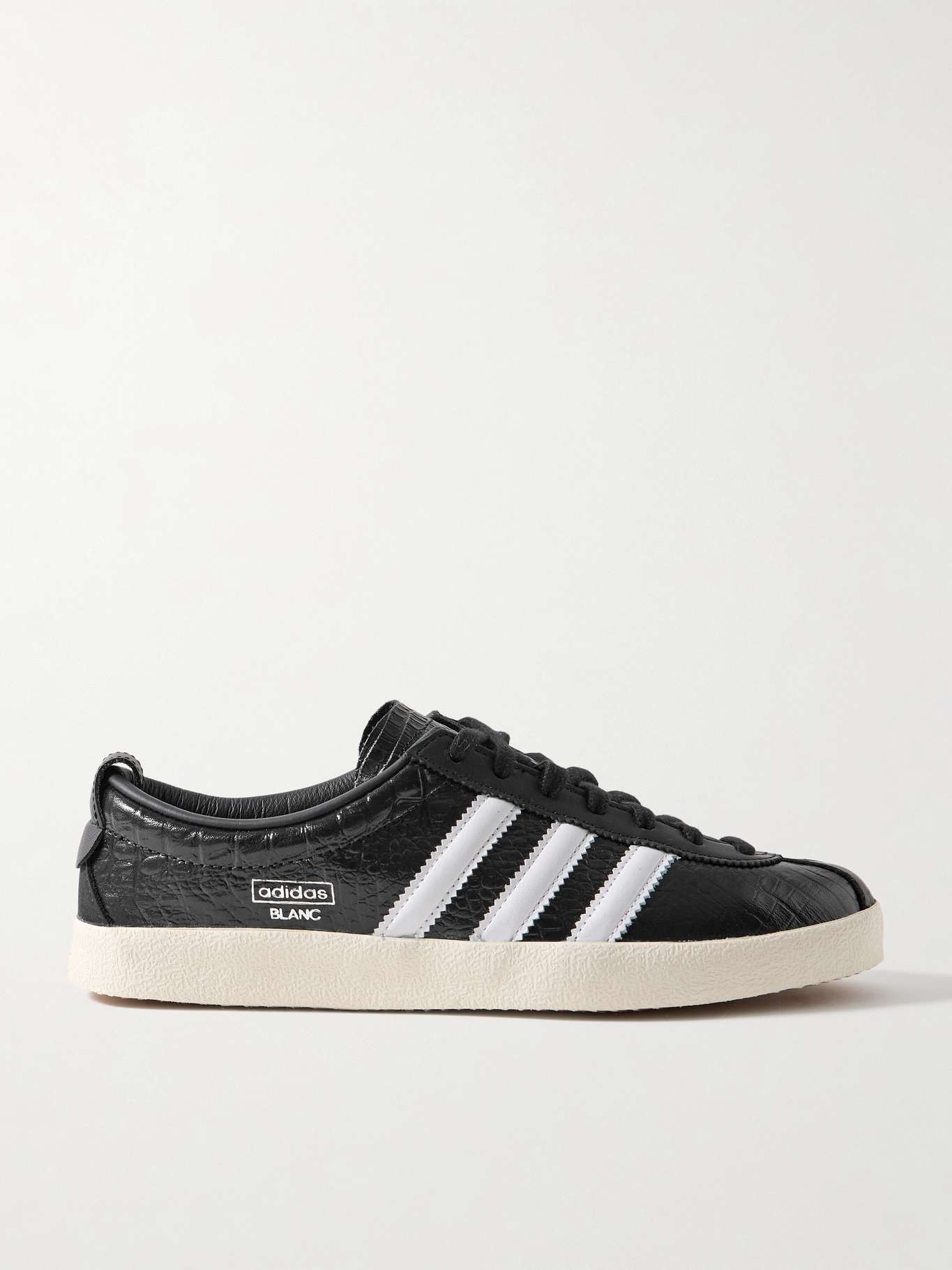 EDITORS'NOTES adidas Originals is an expert when it comes to crafting sportswear-inspired sneakers stylish enough for every day. This 'Blanc' pair is crafted from croc-effect glossed-leather and detailed with the brand's signature trio of contrasting stripes. SIZE & FIT Fits true to size, please refer to Adidas size guide below: - UK 3.5 = US 5/ EU 36 - UK 4 = US 5.5/ EU 36.7 - UK 4.5 = US 6/ EU 37.3 - UK 5 = US 6.5/ EU 38 - UK 5.5 = US 7/ EU 38.7 - UK 6 = US 7.5/ EU 39.3 - UK 6.5 = US 8/ EU 40 - UK 7 = US 8.5/ EU 40.7 - UK 7.5 = US 9/ EU 41.3 - UK 8 = US 9.5/ EU 42 - UK 8.5 = US 10/ EU 42.7 - UK 9 = US 10.5/ EU 43.3 - UK 9.5 = US 11/ EU 44 - UK 10 = US 11.5/ EU 44.7 - UK 10.5 = US 12/ EU 45.3 - UK 11 = US 12.5/ EU 46 - UK 11.5 = US 13/ EU 46.7 - UK 12 = US 13.5/ EU 47.3 DETAILS & CARE - Rubber sole measures approximately 25mm/ 1 inch - Black and silver croc-effect glossed-leather, white smooth leather (Cow) - Lace-up front - adidas Originals follows its own size guide, therefore the size stated on the box will differ from the one provided in our size chart. To receive your correct fit, please refer to Size & Fit notes